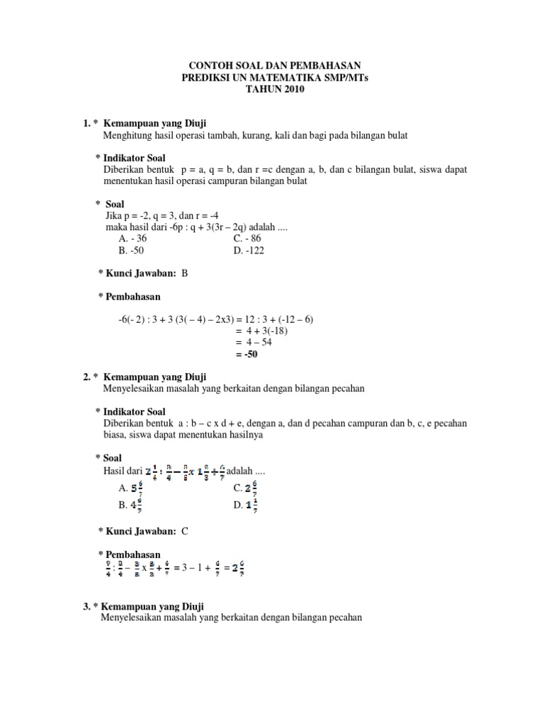 Contoh Soal Un Smp Operasi Hitung Bilangan Bulat