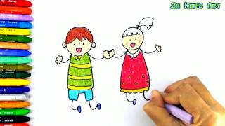 Cara Menggambar Dan Mewarnai Anak Laki Laki Dan Anak Perempuan