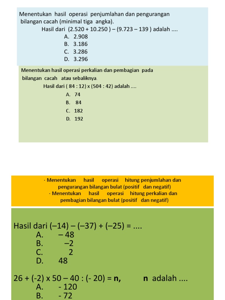 Soal Operasi Hitung Campuran Positif Dan Negatif Sekolah Dasar