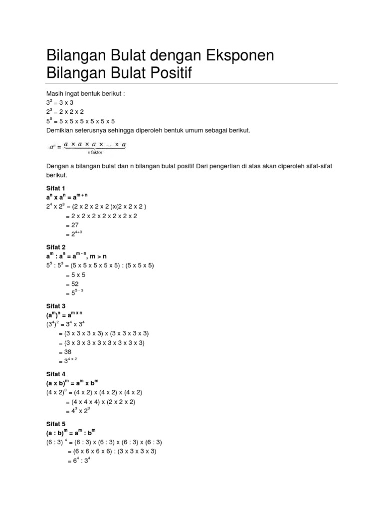 Bilangan Bulat Dengan Eksponen Bilangan Bulat Positif